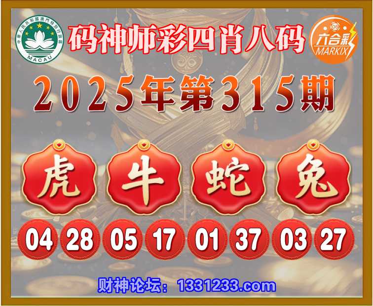 315期:〖码神师彩〗 🍏四肖八码🍏【虎牛蛇兔】开:虎04准