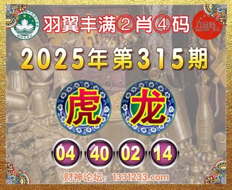 315期:『羽翼丰满』 🥖②肖④码🥖【虎龙】【04.40.02.14】开:虎04准