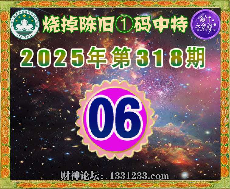 318期:【烧掉陈旧】 🚡①码中特🚡【06】开:06准