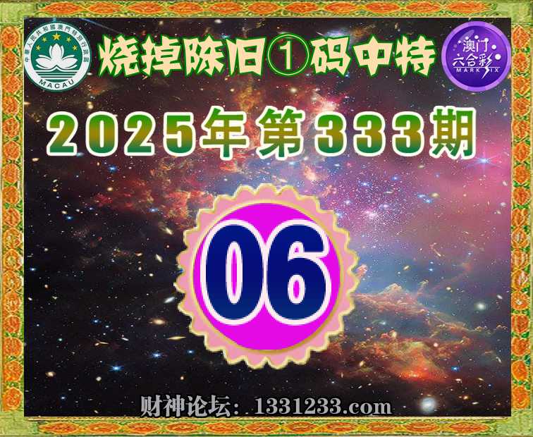 333期:【烧掉陈旧】 🚡①码中特🚡【06】开:06准