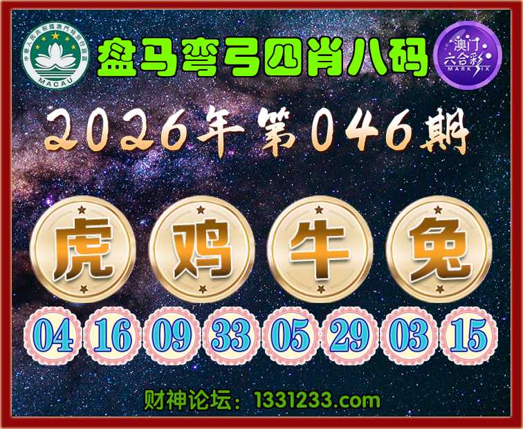 046期:《盘马弯弓》 📸四肖八码📸【虎鸡牛兔】开:兔03准