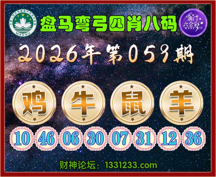 059期:《盘马弯弓》 📸四肖八码📸【鸡牛鼠羊】开:鸡10准