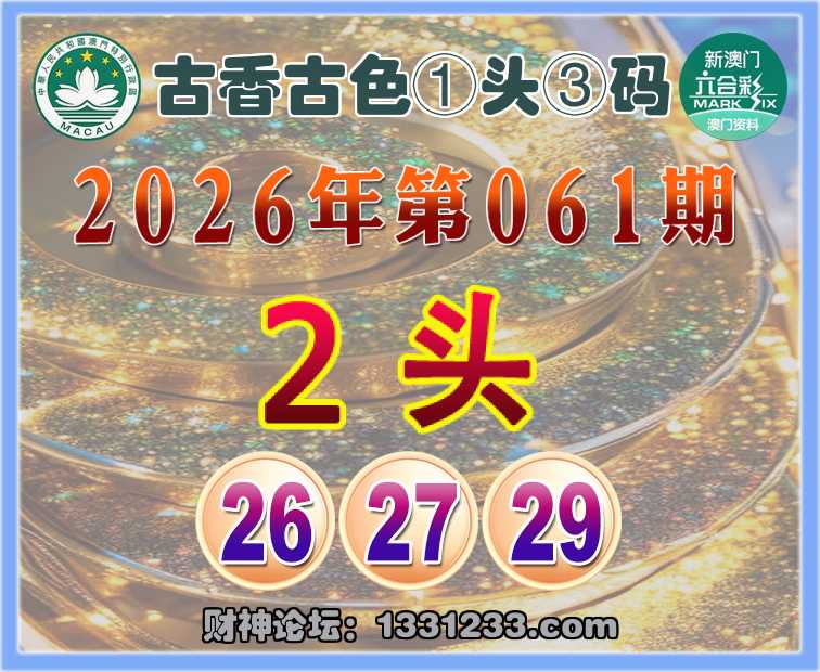 061期: ☺️『古香古色』 ☺️①头③码☺️【2头主:26.27.29】开:虎29准