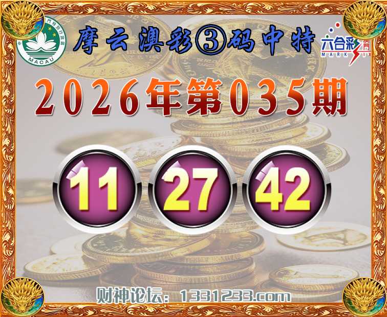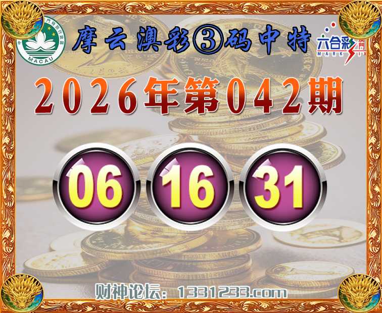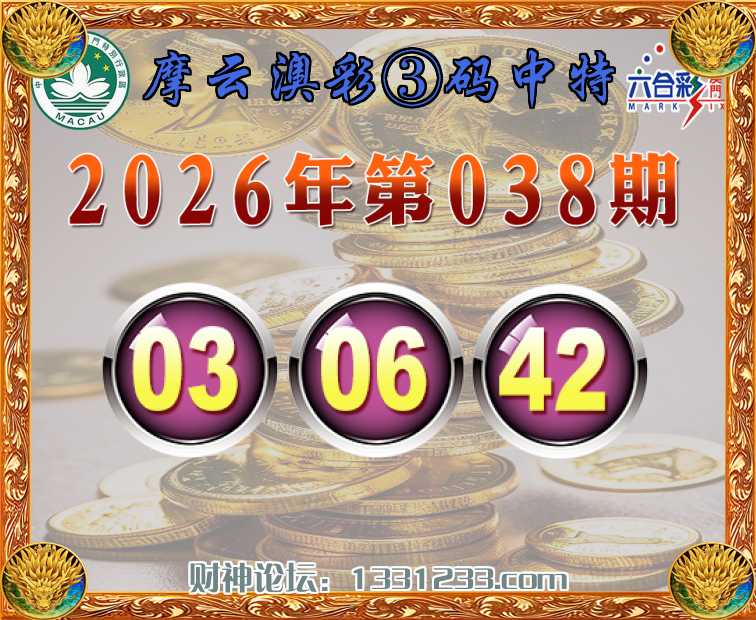 038期:《摩云澳彩》 🏇③码中特🏇【03.06.42】开:42准