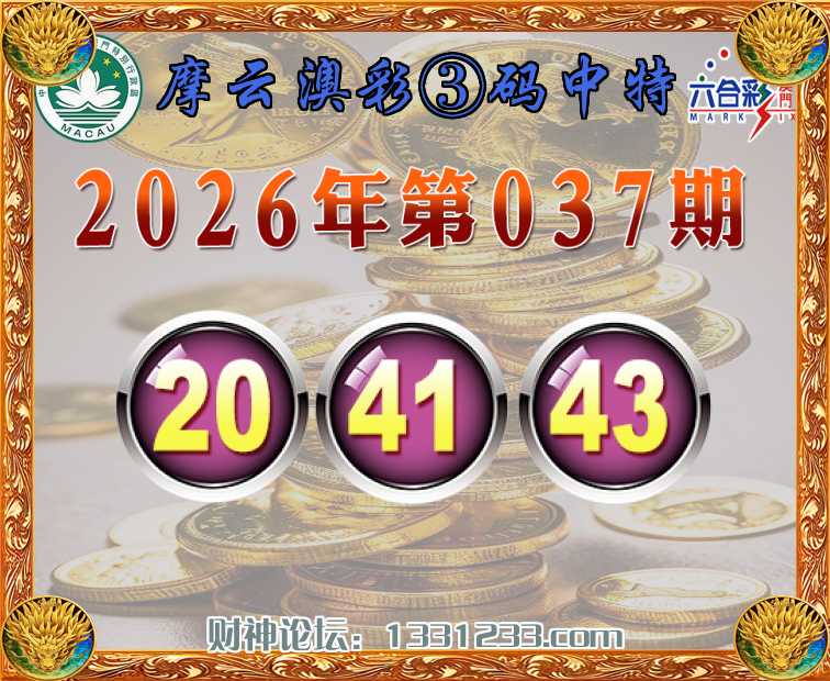 037期:《摩云澳彩》 🏇③码中特🏇【20.41.43】开:43准