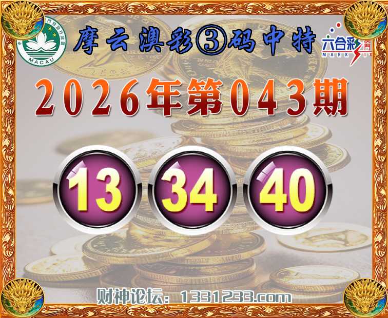 043期:《摩云澳彩》 🏇③码中特🏇【13.34.40】开:13准