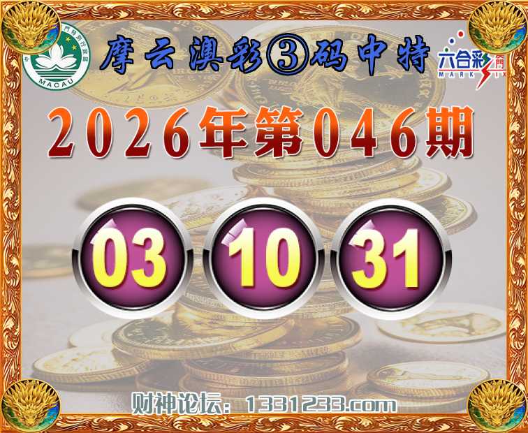 046期:《摩云澳彩》 🏇③码中特🏇【03.10.31】开:03准