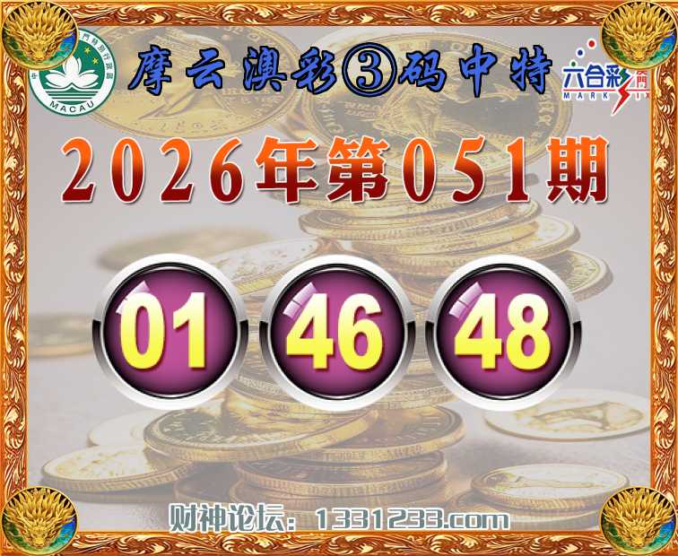 051期:《摩云澳彩》 🏇③码中特🏇【01.46.48】开:01准