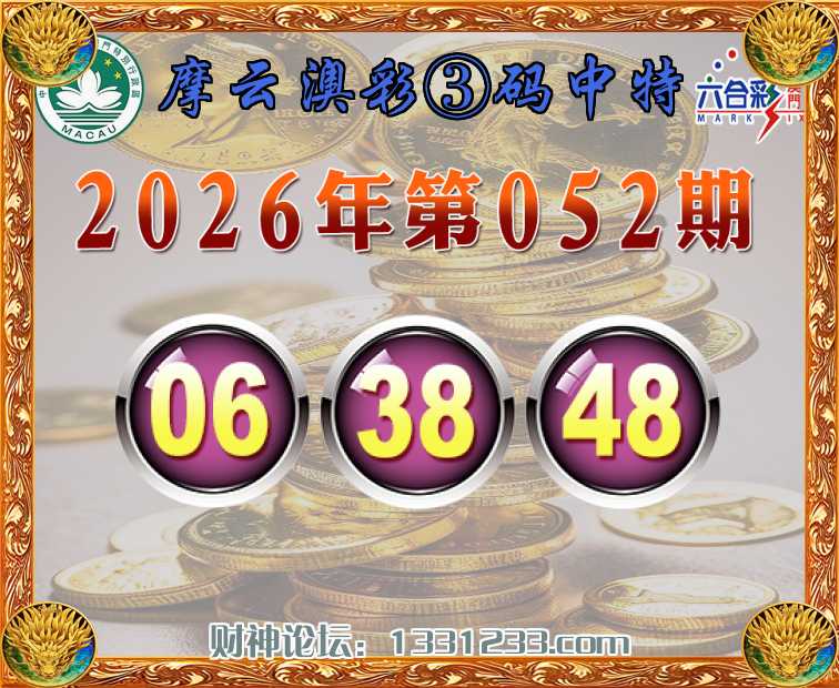 052期:《摩云澳彩》 🏇③码中特🏇【06.38.48】开:38准