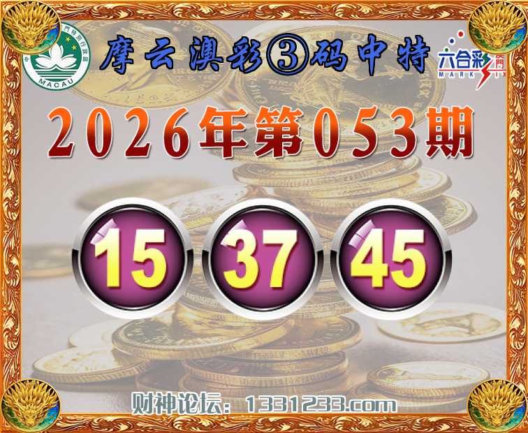 053期:《摩云澳彩》 🏇③码中特🏇【15.37.45】开:15准