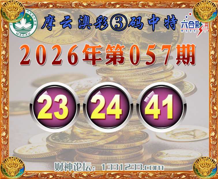057期:《摩云澳彩》 🏇③码中特🏇【23.24.41】开:23准