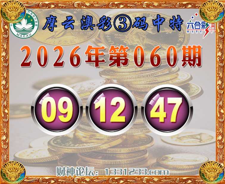 060期:《摩云澳彩》 🏇③码中特🏇【09.12.47】开:09准