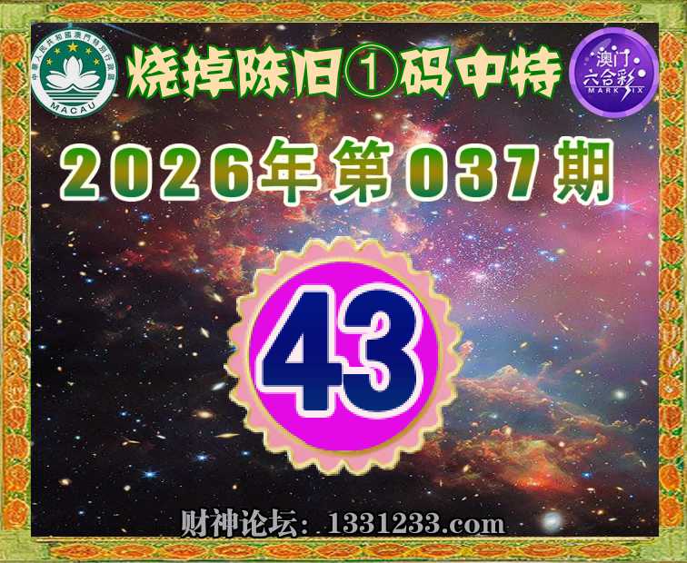 037期:【烧掉陈旧】 🚡①码中特🚡【43】开:43准