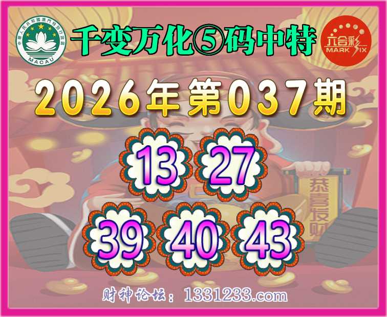 037期:【千变万化】 🧏♀️⑤码中特🧏♀️【13.27.39.40.43】开:43准