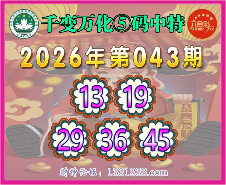 043期:【千变万化】 🧏♀️⑤码中特🧏♀️【13.19.29.36.45】开:13准