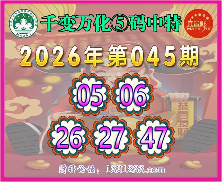 045期:【千变万化】 🧏♀️⑤码中特🧏♀️【05.06.26.27.47】开:01错
