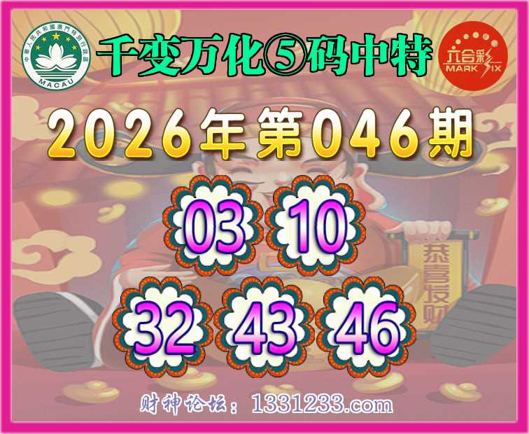 046期:【千变万化】 🧏♀️⑤码中特🧏♀️【03.10.32.43.46】开:03准