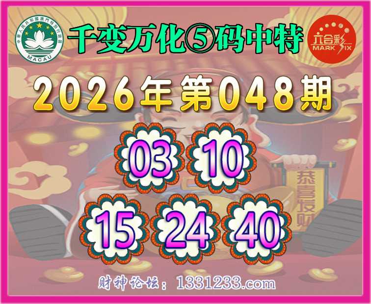 048期:【千变万化】 🧏♀️⑤码中特🧏♀️【03.10.15.24.40】开:24准
