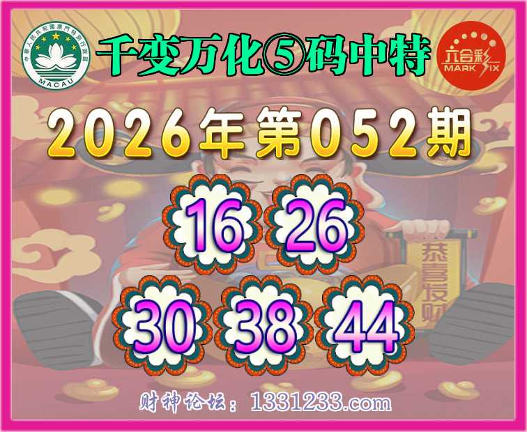 052期:【千变万化】 🧏♀️⑤码中特🧏♀️【16.26.30.38.44】开:38准