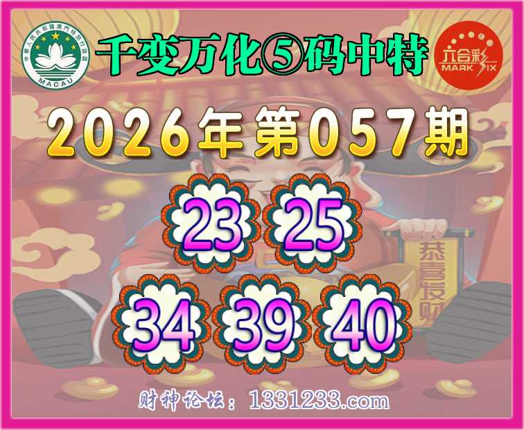 057期:【千变万化】 🧏♀️⑤码中特🧏♀️【23.25.34.39.40】开:23准