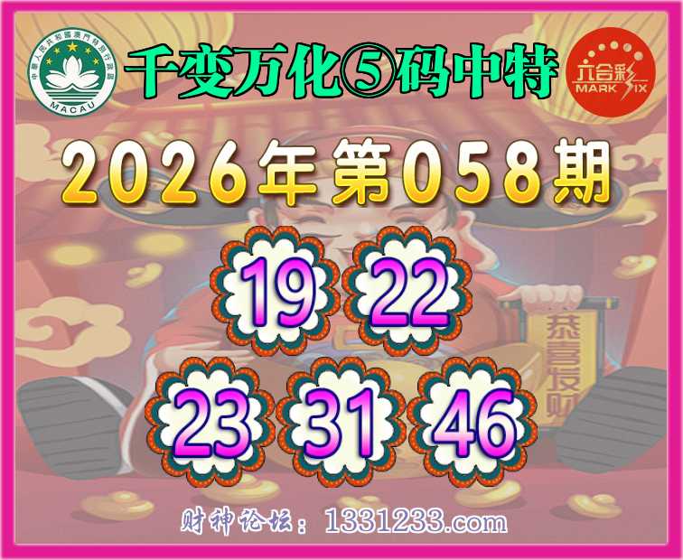 058期:【千变万化】 🧏♀️⑤码中特🧏♀️【19.22.23.31.46】开:31准