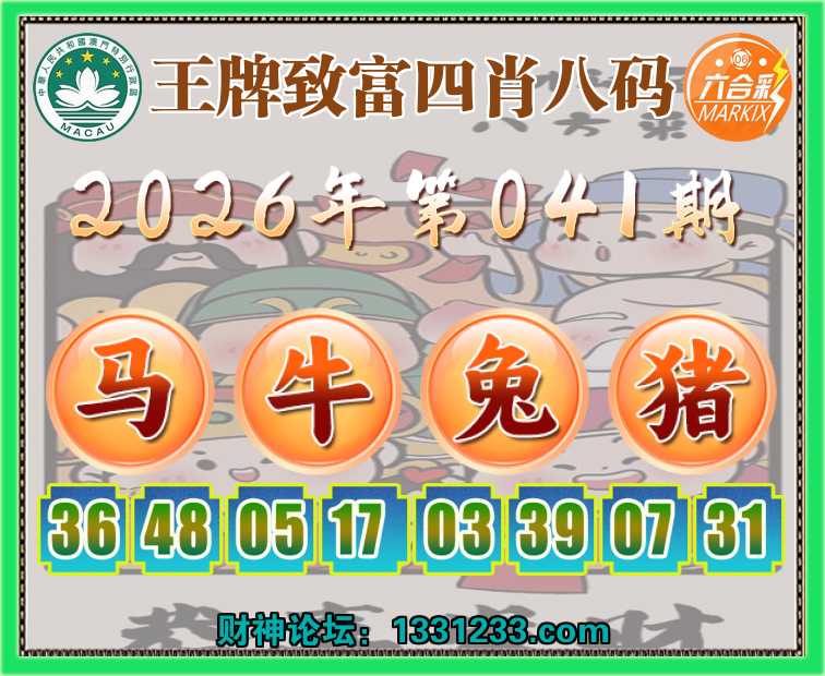041期:『王牌致富』 🥖四肖八码🥖【马牛兔猪】开:马36准