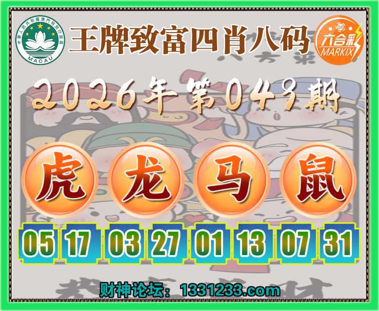 049期:『王牌致富』 🥖四肖八码🥖【虎龙马鼠】开:马13准
