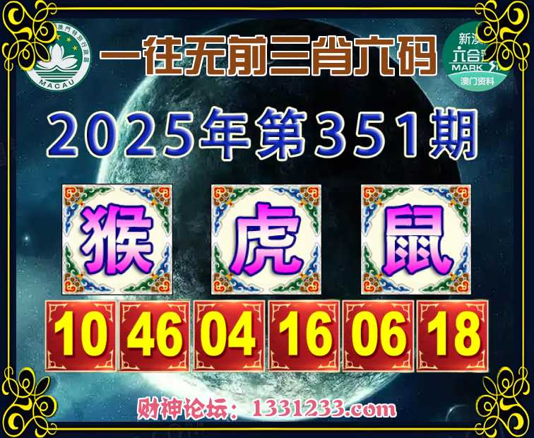 351期:【一往无前】 🌲三肖六码🌲【猴虎鼠】开:虎04准