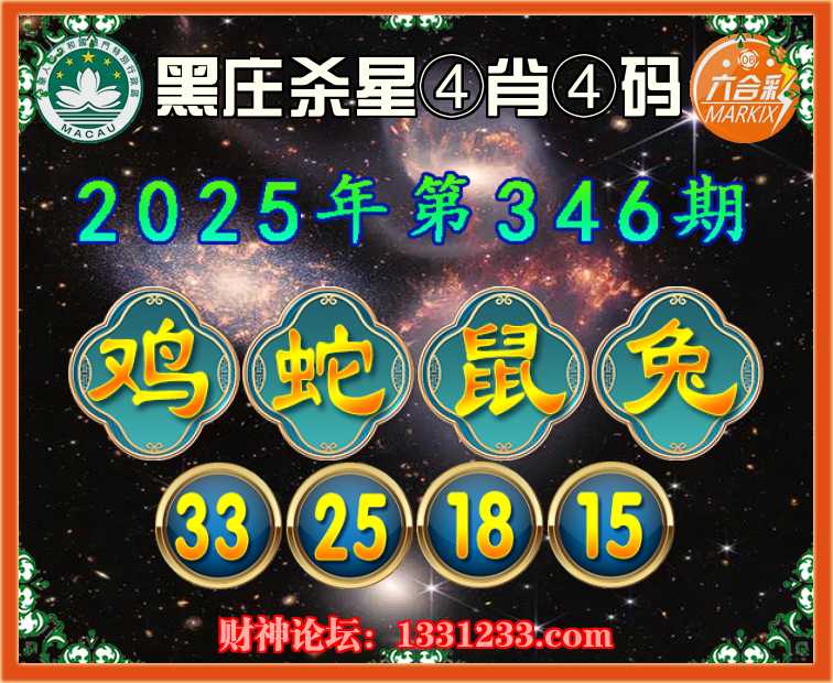 346期:《黑庄杀星》 ⛩️④肖④码⛩️【鸡蛇鼠兔】【33.25.18.15】开:兔03准