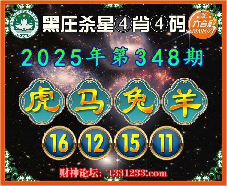 348期:《黑庄杀星》 ⛩️④肖④码⛩️【虎马兔羊】【16.12.15.11】开:虎16准