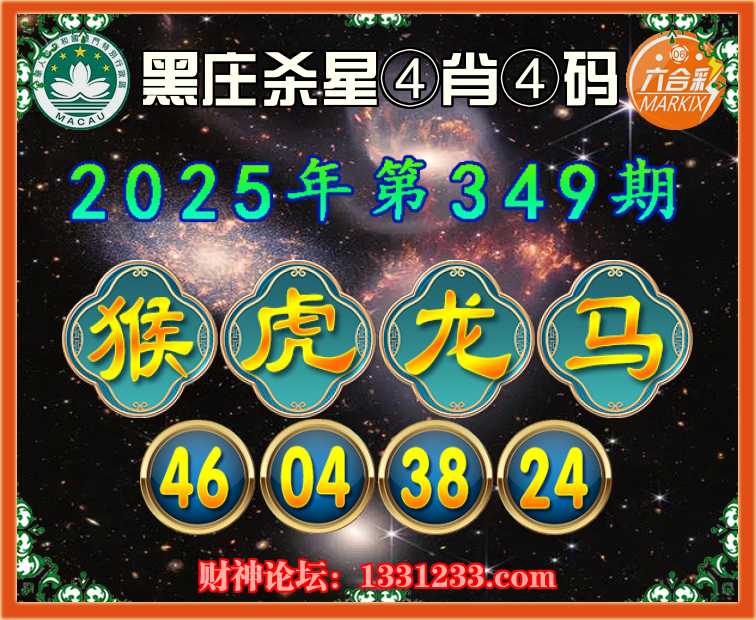 349期:《黑庄杀星》 ⛩️④肖④码⛩️【猴虎龙马】【46.04.38.24】开:猴22准